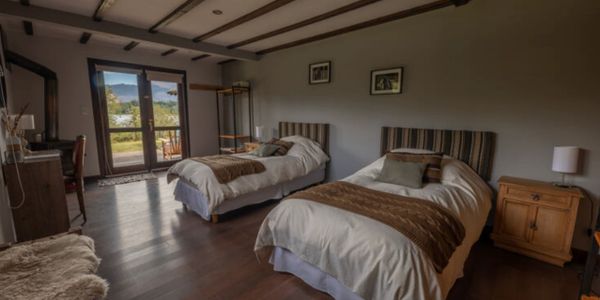 Each of the four Le Fario rooms features a king-sized bed, a spacious private bathroom overlooking the lake and the Andes mountains. The lodge has a spacious living room, a central wood fireplace with expansive windows that offer a great view of the magnificent surrounding landscape, and an outdoor hot tub placed next to the lodge, which you can enjoy anytime.